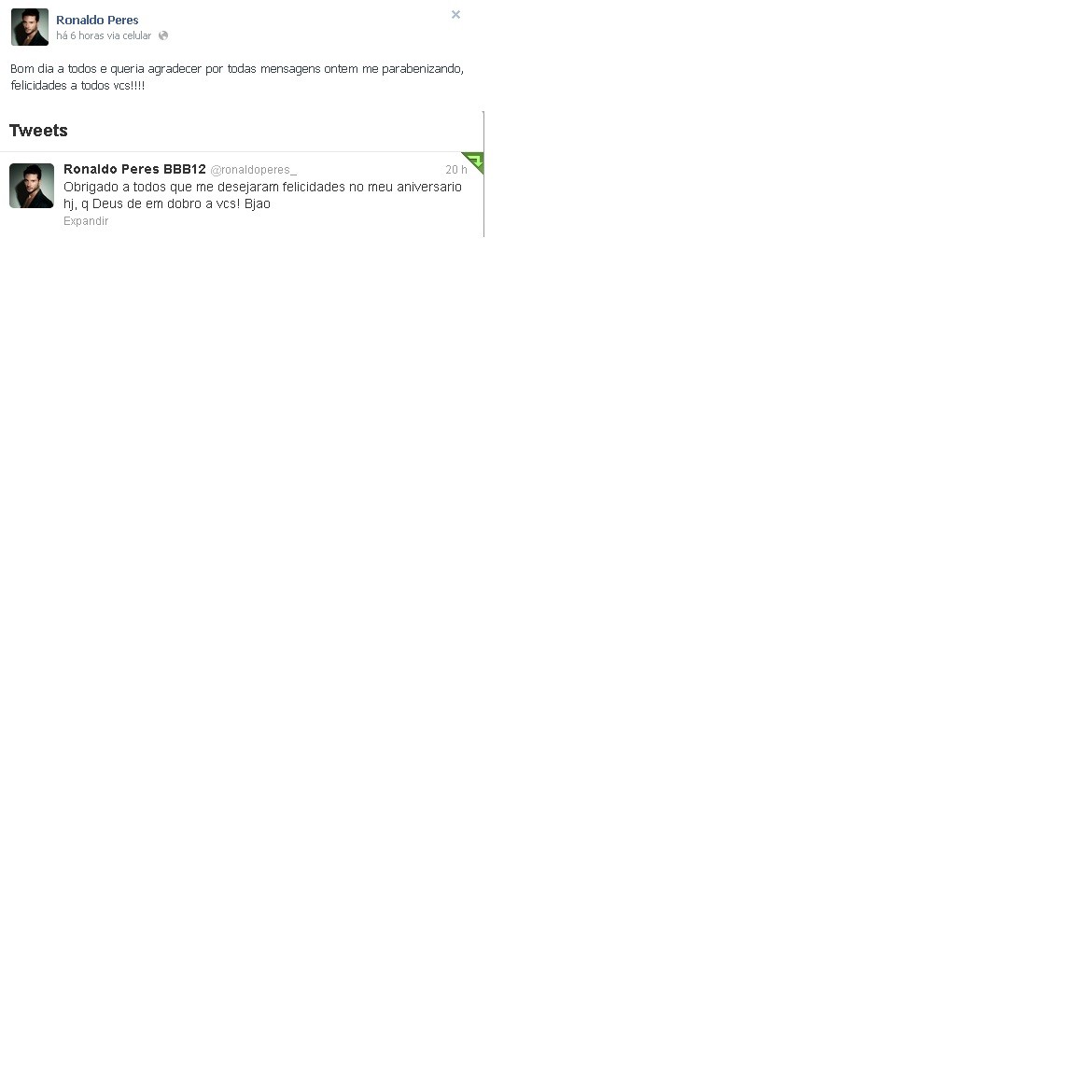 Como sempre Ronaldo é atencioso com seus, ontem ele foi ao Twitter e hoje pela manhã ao Facebook, agradecer as mensagens recebidas desejando Feliz Aniversário a ele no dia de ontem.